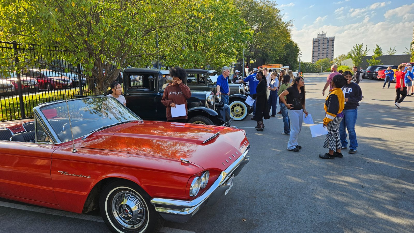Every year my club members attend a car gathering at an Omaha, Nebraska high school. It's organized by a teacher as part of their history curriculum. Waves of students came out during their class periods. They were inquisitive we enjoyed answering questions and demonstrated car features. We had 7 Model T's, 8 Model A's and 2 oddballs. It was a fun day.