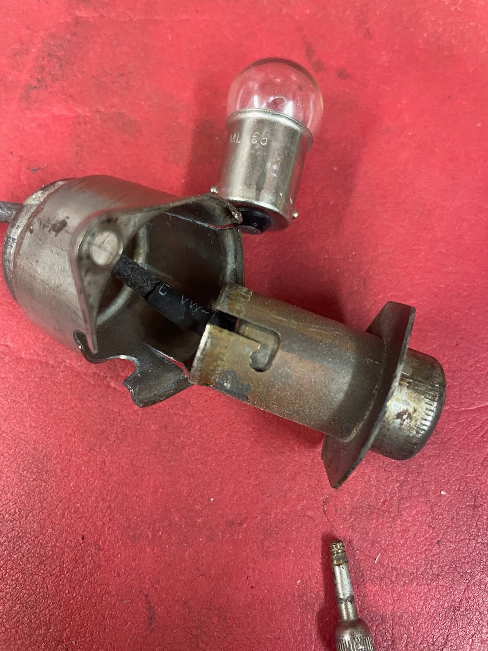 Going back together some sort of fasteners will be needed, as the spring behind the cup and bulb contact exerts some force. Maybe small Pop Rivets may work, have used them to mount the metal stop stencil and glass lens to Ford ‘26-‘27 accessory stop/tail lamp rim. Had to slightly overdrill the hole of the Pop Rivet to allow the retaining screw to pass.