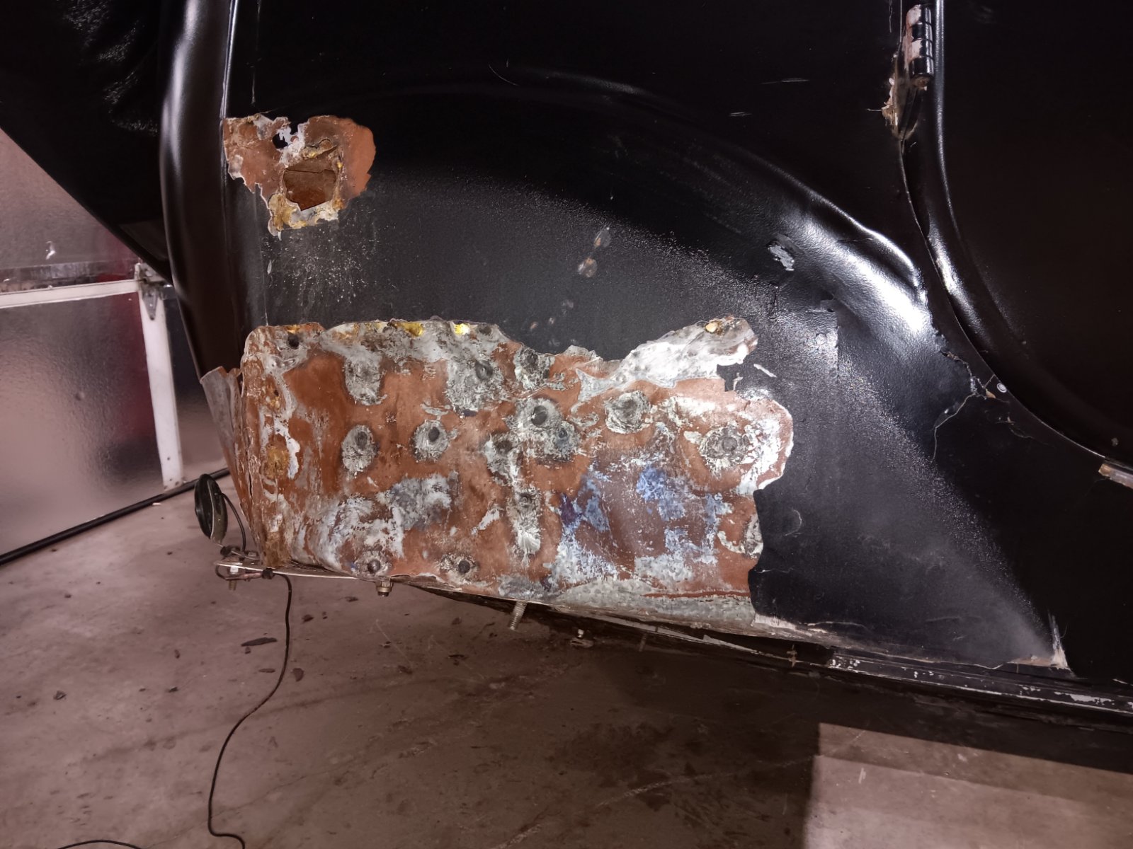 Someday I will probably replace the body. I have the body from my pickup project that will probably be used. It's sort of disheartening to.see the state of the metal. It's either this, or galvanized patches throughout.