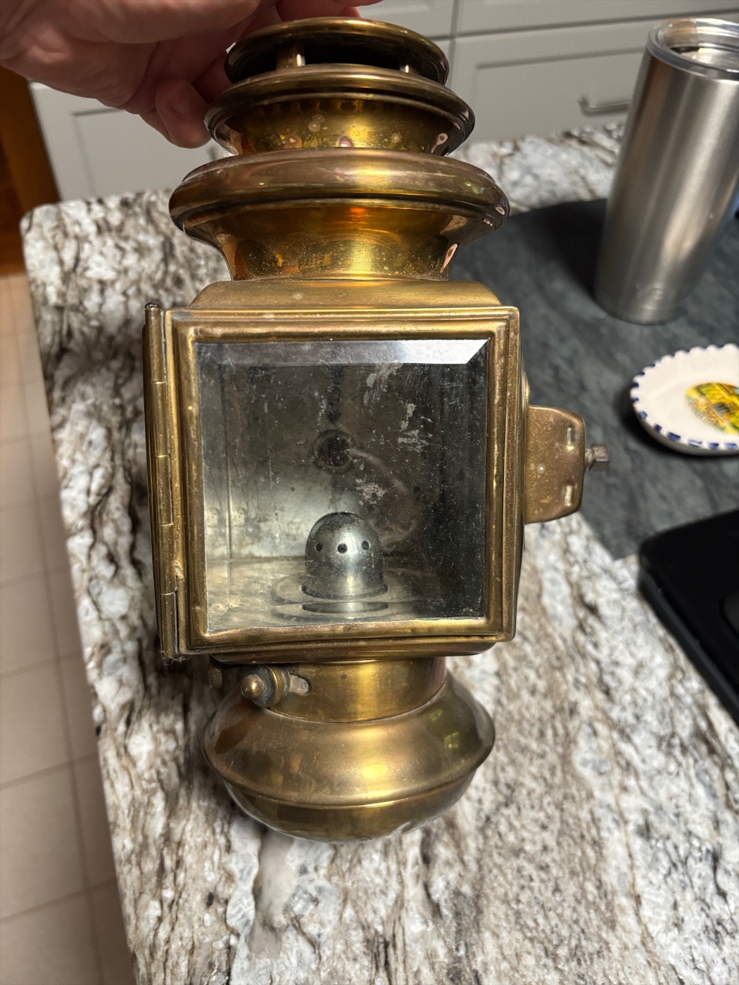 John. Sorry no doors. Would also love to know when it was painted gray. As thought all 12 were dark blue. But can tell it’s been many many years. Here are pictures of my light. Thank you.