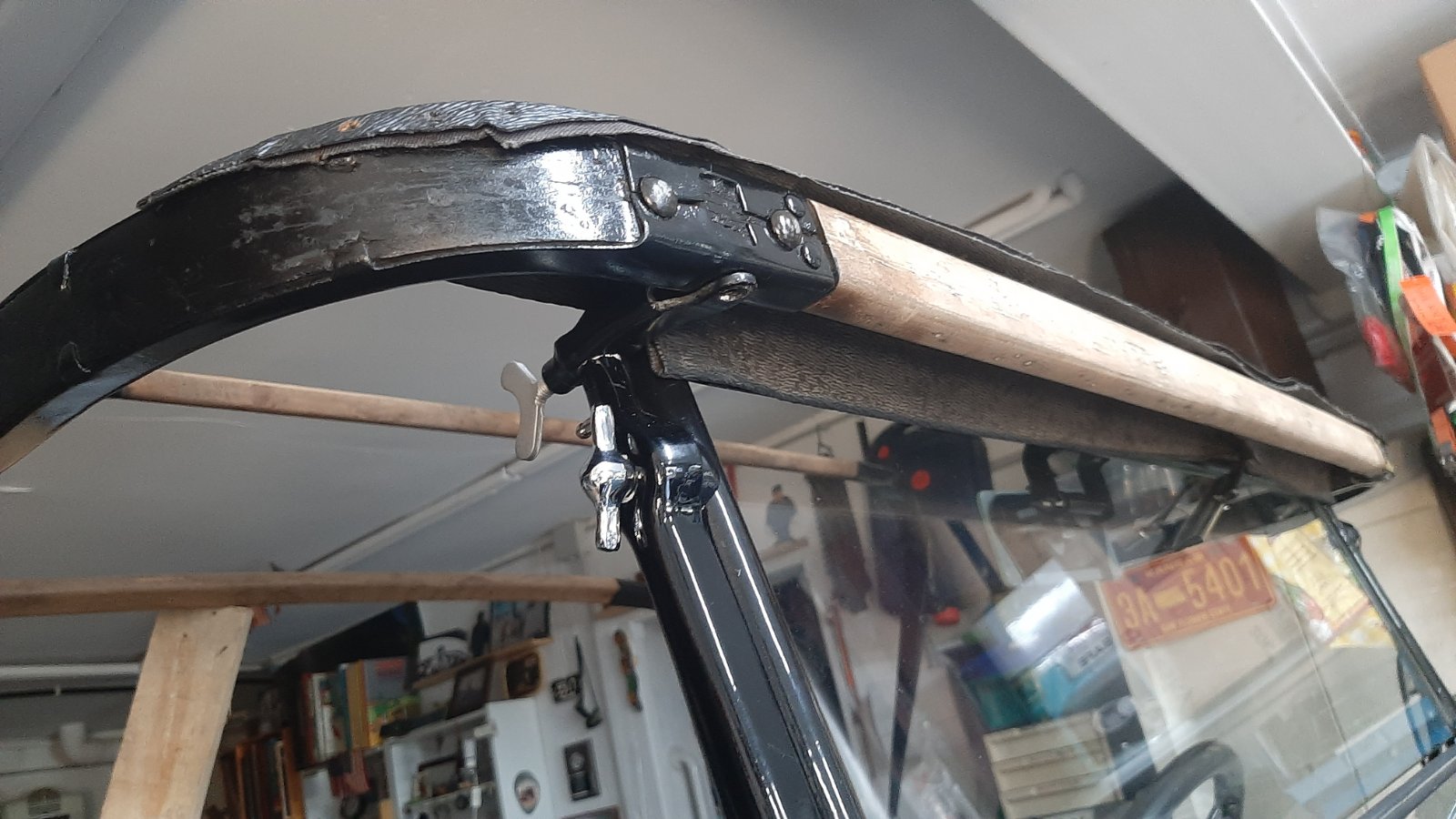 Pieces of used '24 top covering, the body and the rear curtain used to mount on the '23.