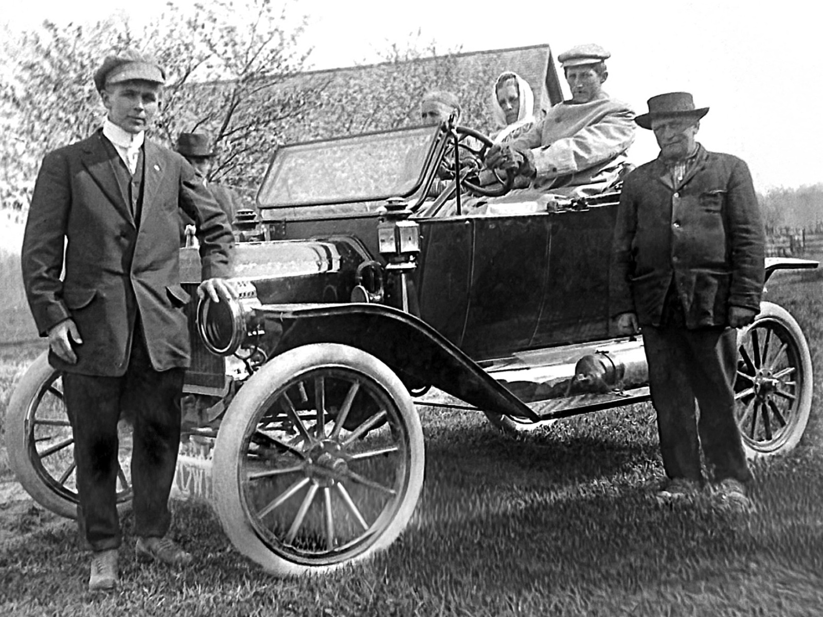The car appears to be an early 1913. Although tough to be sure, there appears to be no bead along the bottom of the turtle deck (in the other thread). Another I cannot be certain of, is the headlamps appear to be all brass, like the 1912s had. It has been shared before that some early 1913s were so equipped.