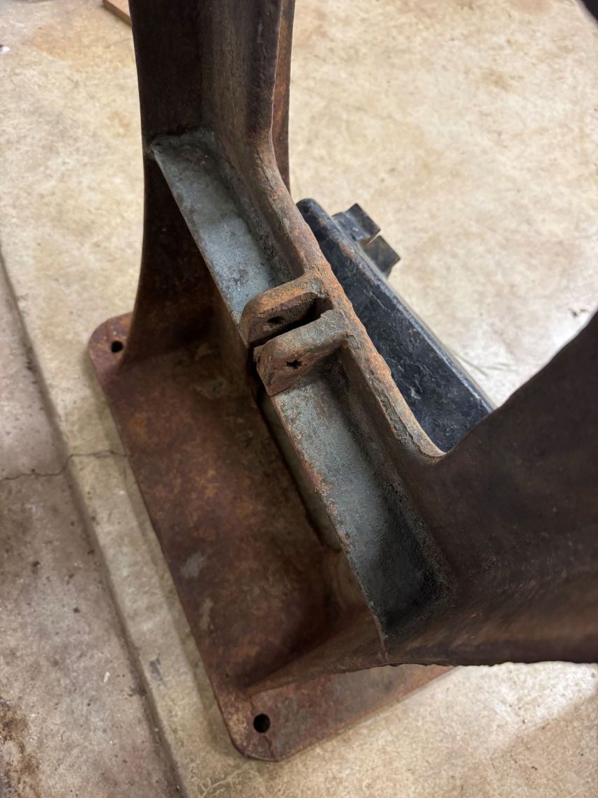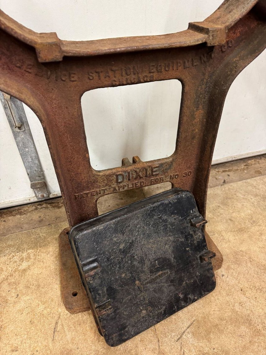 I recently purchased a Dixie model axle rebuild stand made by Service Station Equipment Company (SSECO). It is missing the foldable extension that supports the torque tube and holds the tool tray. Does anyone have one of this style that they'd be willing to take a bunch of detailed photos and measurements of? I can get close with the advertising images and some images I found of another stand, but I'd like to get it as close as I can.