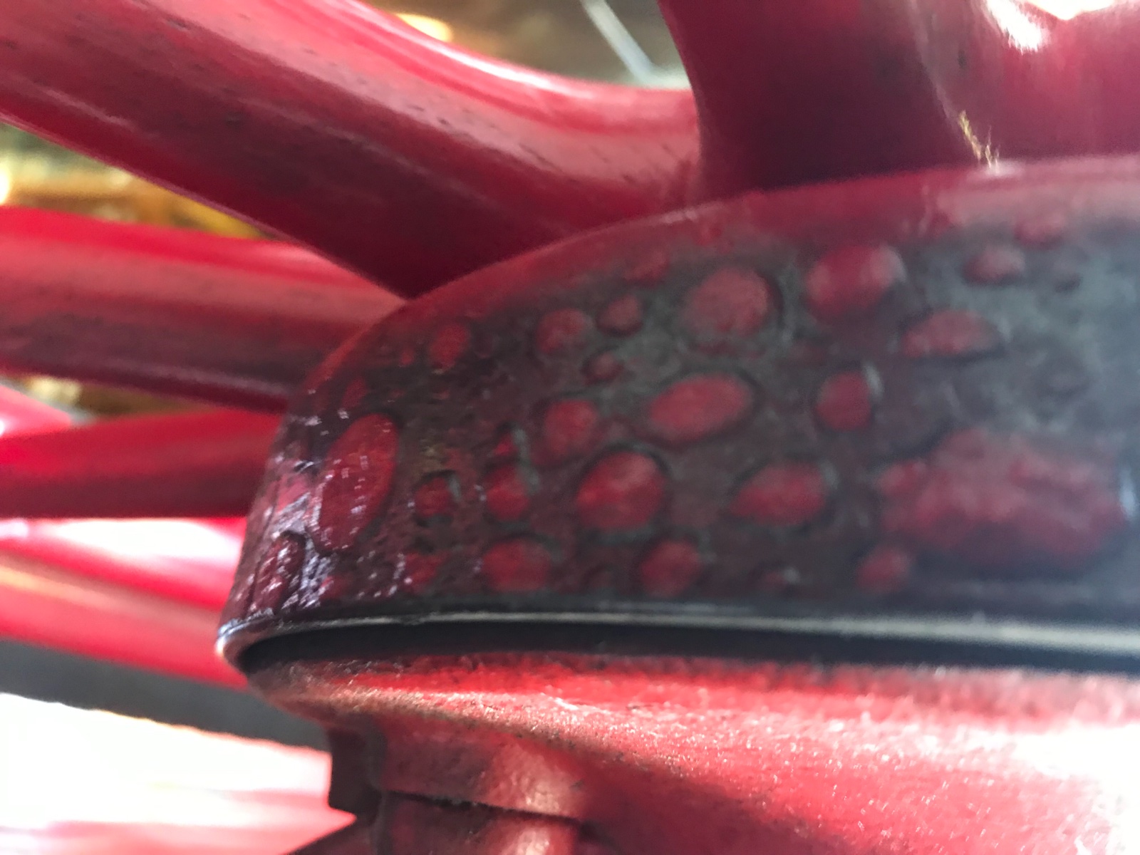 James, Fix and adjust the dragging parking brakes not to drag on drums when hand lever is forward. Also read post on how to adjust for a free neutral. When you clean and repaint the drums in the damaged area, keep the repaint to a thin layer, the burnt paint looks way to hick in the picture.