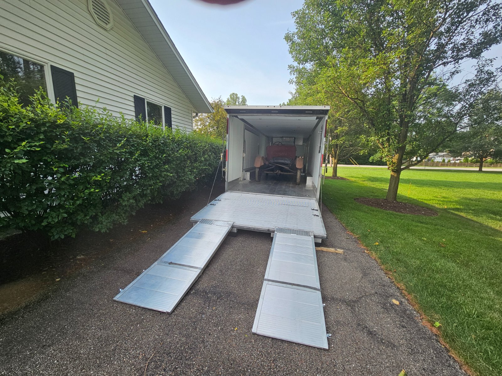 This transport will be done with the Ameri-Lite aluminum single car ENCLOSED Trailer. This is an actual vehicle trailer with a Drive In Rear Door & a beaver/dove tail rear for easy loading of the lowest of vehicles.