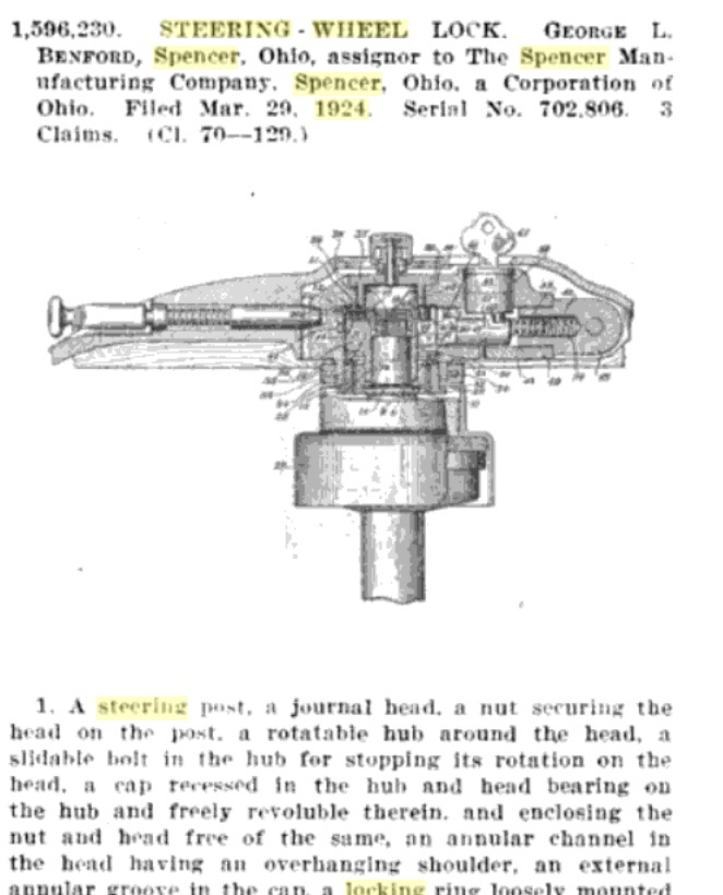 Spencer made fatman steering wheels for almost any car, in a variety of styles and sizes. Some folded up and above for if the car's control levers were below the steering wheel. Others, dropped down surrounding the steering column for cars with control levers above the steering wheel.