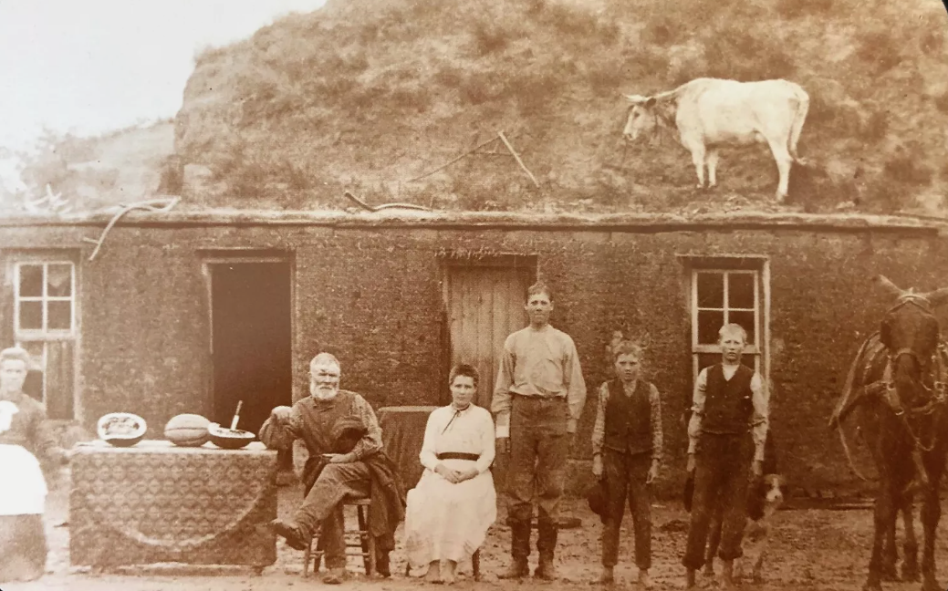 I'm not sure, but it looks like Andrew Carnegie brought some watermelon to share with them. Rooftop cows were quite fashionable in those early days, but watermelon was a very rare treat.