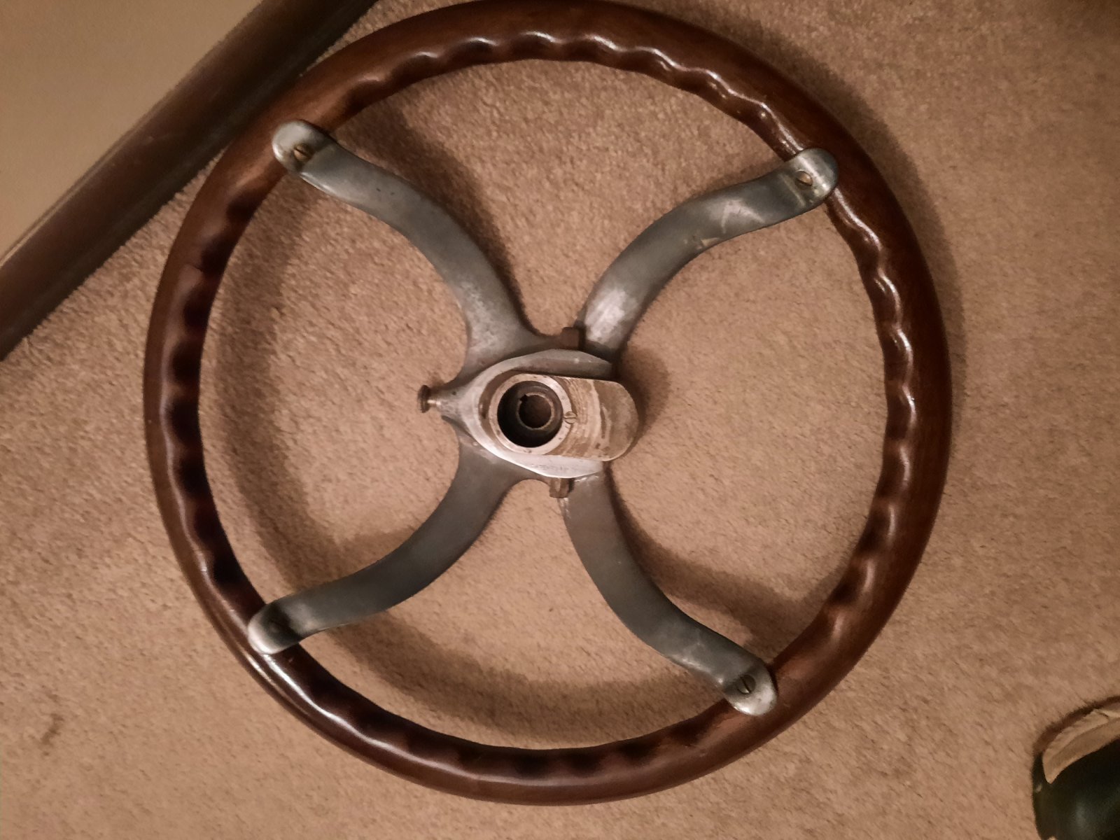For sale: I have 2 fatman steering wheels. 1st one is a Bauer and the 2nd one is a Spencer. Wood is very good condition. Have not done any cleaning or polishing so you can make it what you want. Have a key for the Spencer. They are $500 each plus postage.