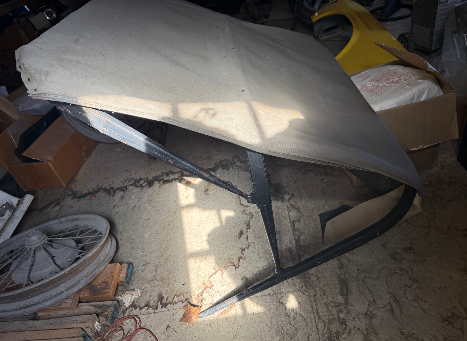 I have one that is available. I added the tan canvas as a quick way to add some shade when I had my granddaughter out on a summer trip. It is just tacked on. I have a 25 roadster that i had it on for a few months until I found the correct one for my car. A friend found this at Hershey for me thinking it would fit my car. I did cut the front bow in order to get it to fit my windshield frame. I’ve got $550 in it