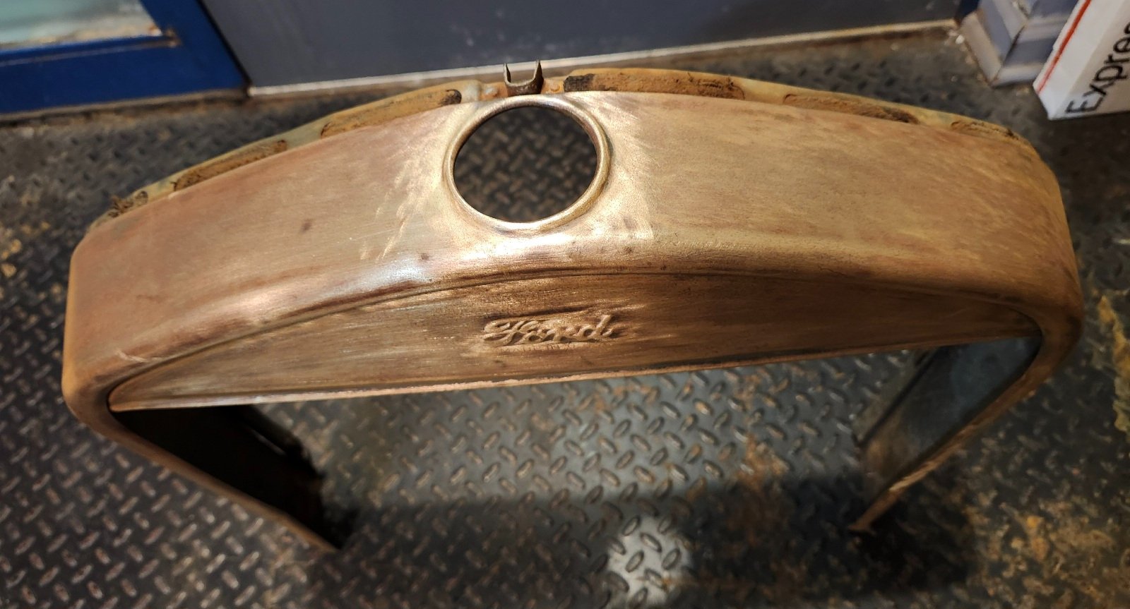 Sold to Ed. That was fast!! An original 1926-1927 brass radiator shell. It could be used on 1923-1925 as well. Good original condition. There is one, unnoticeable, very small split on the right, lower lace area. It wouldn't be seen on a car. The neck area is in very good condition. The mounting feet are good. There is original lacing. These are getting hard to find in any condition. This one can be polished or would a great candidate for nickel plating. A good one. Price is 165.00 INCLUDING shipping via FedEx Ground in the USA. I do not respond to messages here, so call me at 734-730-4274 or email directly at motoringicons@hotmail.com Thanks.