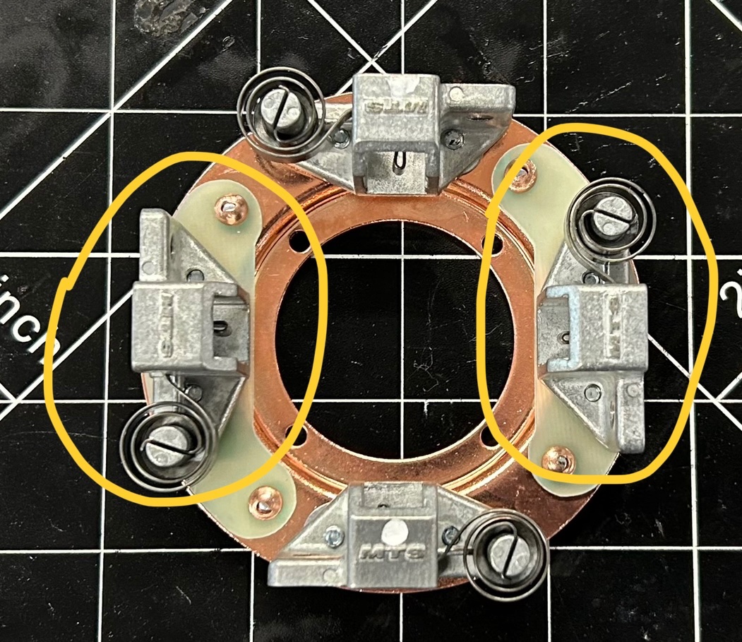 On the first one , one field lead was hooked up to a insulated brush and the other lead was hooked up to the next brush holder which is 90 degrees apart.