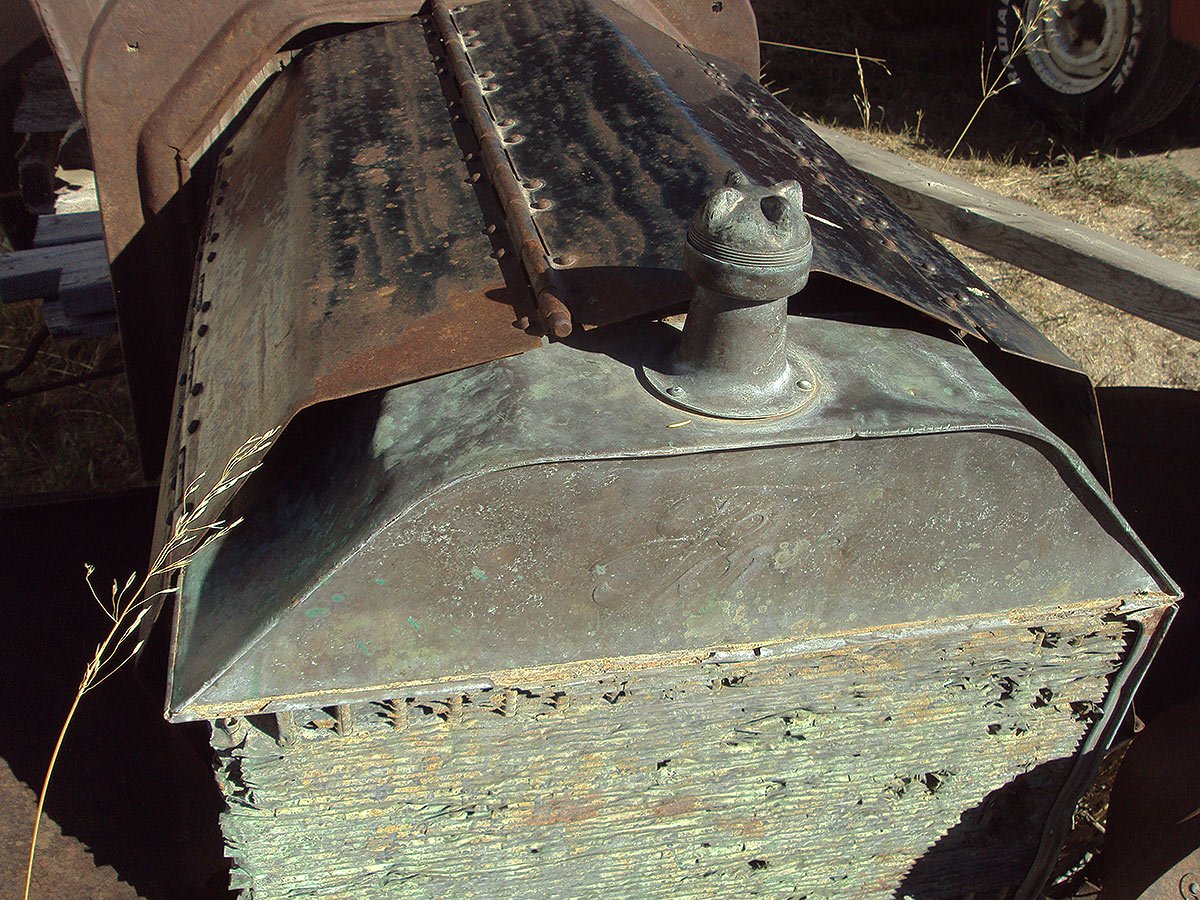 A leather spare tire strap has taken on some beauty since last used.