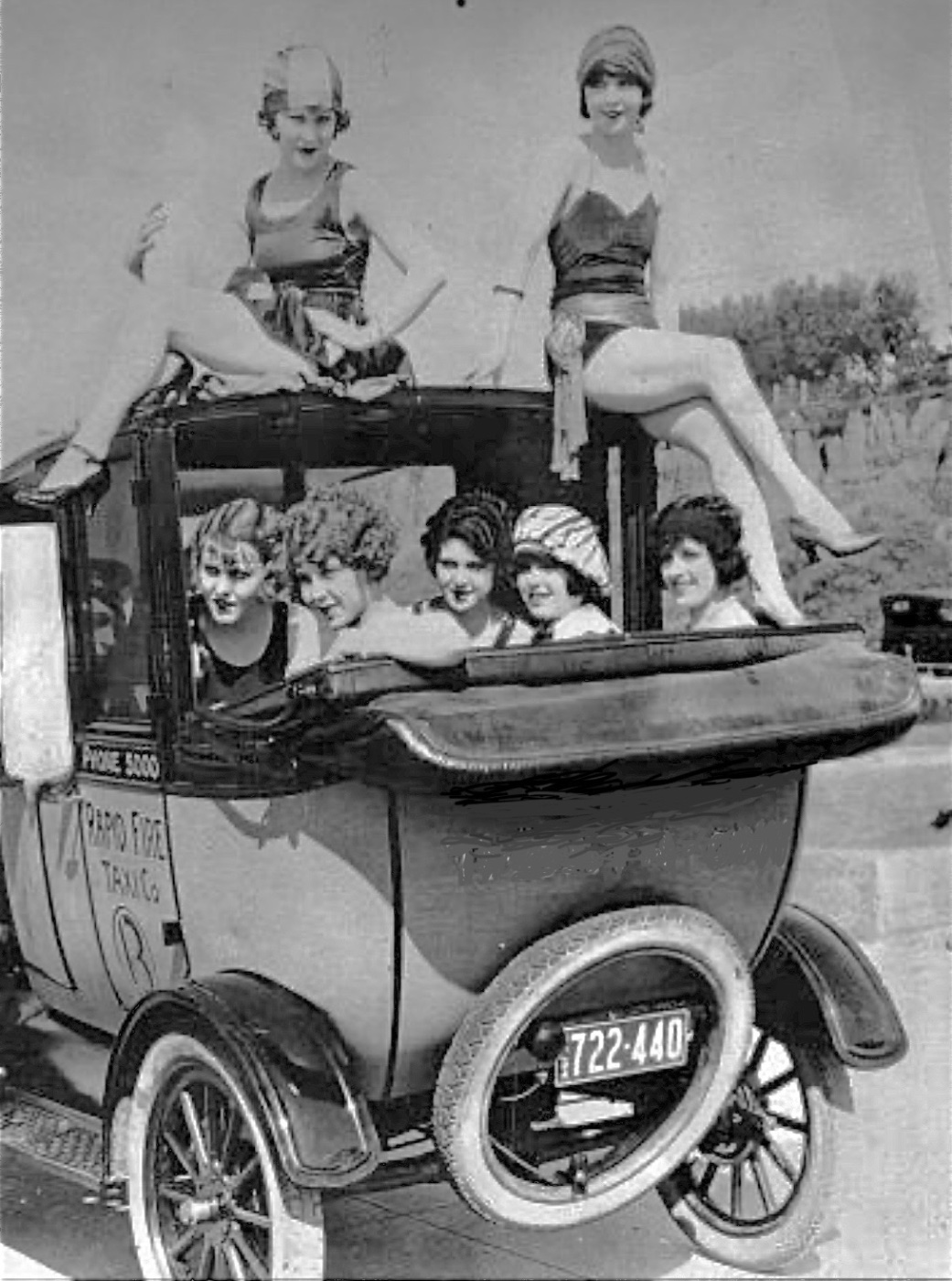 Photo number eight is quite interesting. A probably 1914 runabout, apparently a few years old, I "believe" the license plate is one issued new to an owner of a pre1915 automobile using the previously issued numbers. For 1916 through 1919, car owners used the same state issued plate, but changed a metal insignia for each year. Although the insignia is not clearly seen, I believe it is the 1917 version, a California poppy laid sideways.