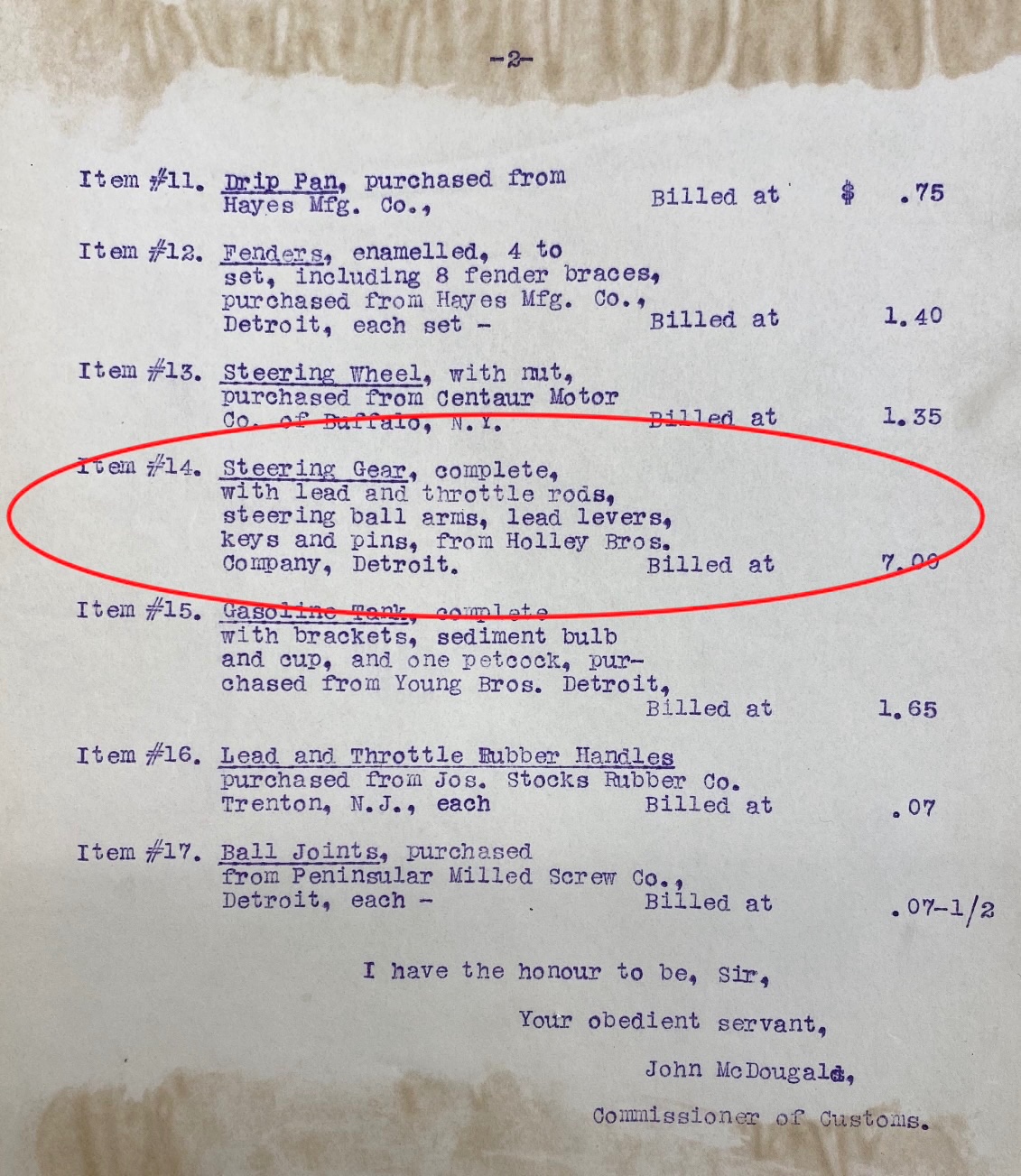 I just reviewed the 1906-07 Canadian import ledgers for Ford K and N. Both list Holley Bros. as the maker of “steering gear” including throttle and lead (spark) levers. My guess is Holley initially made the steering columns, but at some point Dodge took over that order, or contributed too (by 1908, several thousand N and S/SR may have necessitated more than one manufacturer?).