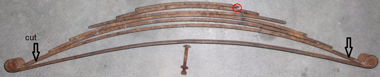 Second, I was on a speedster run many years ago, following a car that had been lowered by bending the rear main leaf into a dropped "V" at each end. That car either hit a pothole or dropped a wheel off the side of the road. The rear suspension compressed violently, and the bottom of the bent "V" hit the axle housing. The rear spring snapped completely in the bottom of the "V", the driver lost control and the speedster flipped completely into the brush along the road. Luckily both occupants walked away in one piece.