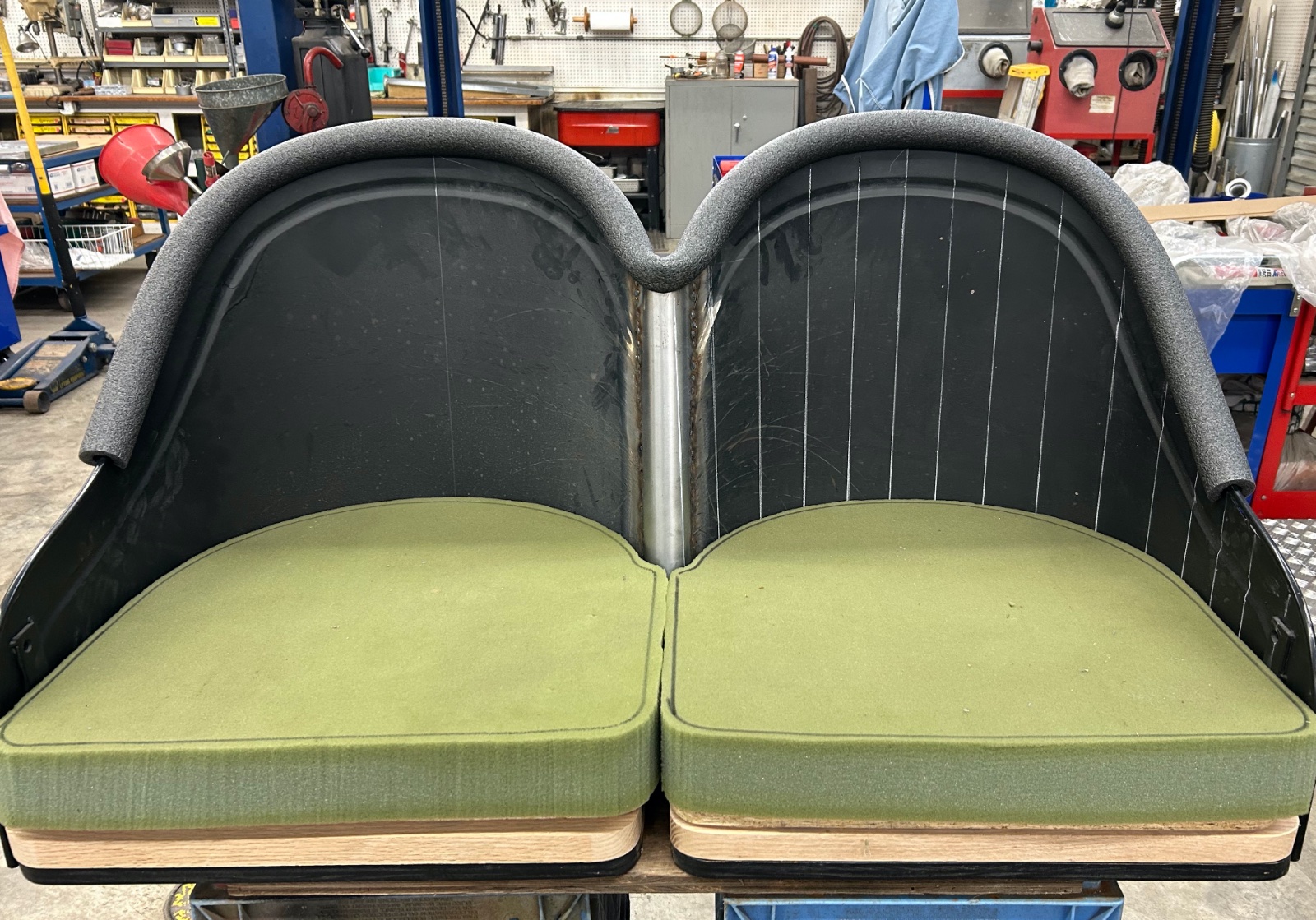 Bucket seats are nice but they do not meet the stature requirements for modern old aged folks...., converting to a love seat design!