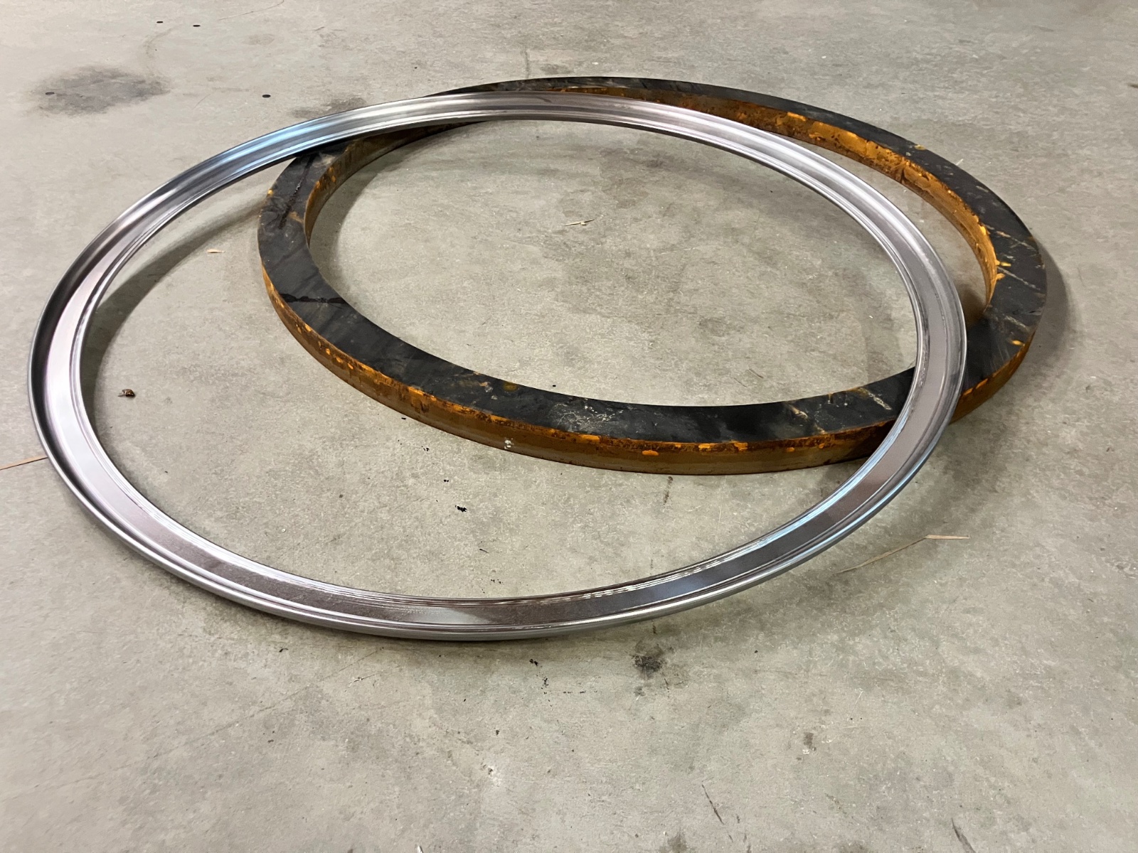 As my luck would have it, I tear down a set of wheels that were in need of “light” lock rings, confidently contact the manufacturer, and am told “no longer available”. Uh oh! Some of you already know that I have a tendency to do things the hard way, so I started planning. I need a lathe that can swing 26”… nope! I need a mill that has 26” of X and Y travel… nope! But wait…! I have a mill with a rotating table! And turns out I had about 1/2” to spare inside the machine. It wasn’t easy, but the first one is done!