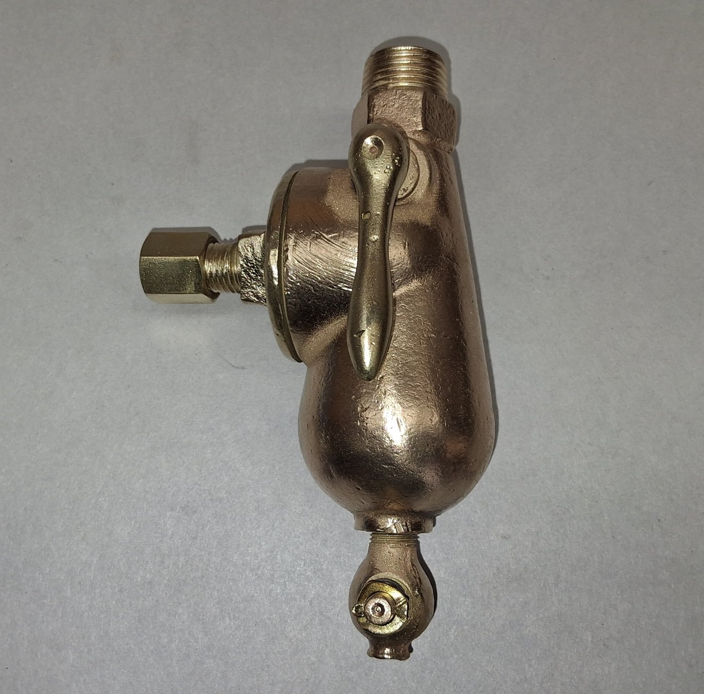 Early brass sediment bulb with Ford scripts. Arm is snug and turns freely $75.00 plus $8.50 domestic shipping. Mark Chaffin (951)805-0928