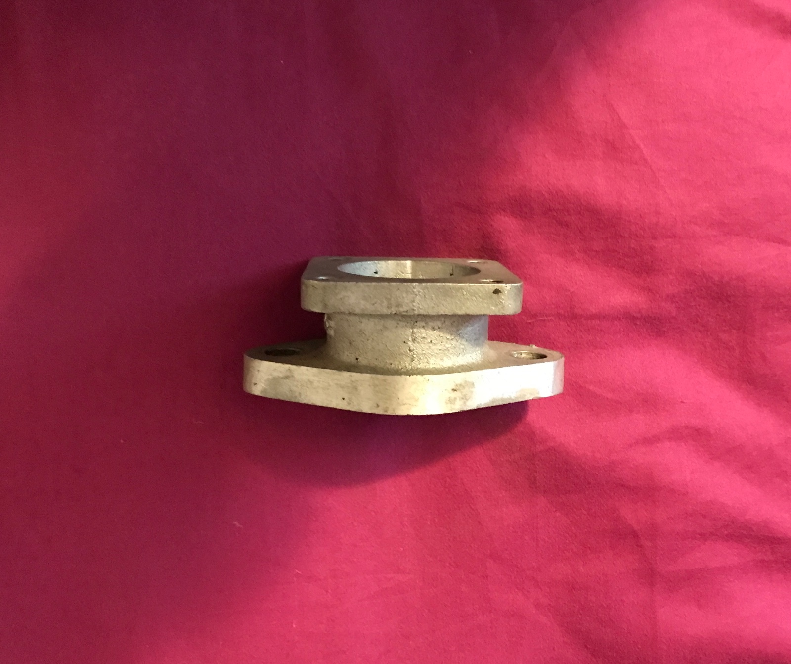 Original Winfield carburetor adaptor. Cast aluminum, with S-63 numbers cast into it. Has a threaded hole for fuel primer or brass plug. Measures 1-5/8 between center of holes on square mounting side. 2-11/16 between center of holes on manifold mounting side. 1-7/16 x 1-1/2 diameter taper in bore. 1-1/2 opening on square side. 75.00 includes shipping.