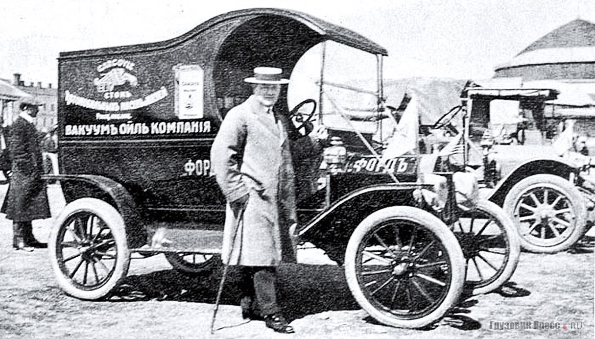 The word "Фордb" on the body side panel and hood top panel in the Russian photo means - of all things! - FORD. The side panel name reads: "Vacuum Oil Company". 'Can't really make out the smaller words. Apparently the Russki owner of this company delivery truck is proud it's a FORD. And why not, I ask???