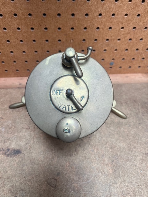 Thanks John....I thought it may be, but could not see the concentric rings pressed into the top. If not mistaken, that is a Bill Brommer repro. I made AC equipment tags for them. Inside the top can is a brass plate operation disclaimer tag, where the control valve is drilled to be functional. Not sure that the lower basket was ever furnished with them. If correct, total of 26 of them were built. Bill displayed one on his 1912 Kings Bakery delivery.