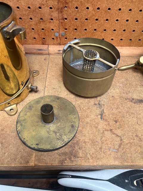 Thanks John....I thought it may be, but could not see the concentric rings pressed into the top. If not mistaken, that is a Bill Brommer repro. I made AC equipment tags for them. Inside the top can is a brass plate operation disclaimer tag, where the control valve is drilled to be functional. Not sure that the lower basket was ever furnished with them. If correct, total of 26 of them were built. Bill displayed one on his 1912 Kings Bakery delivery.