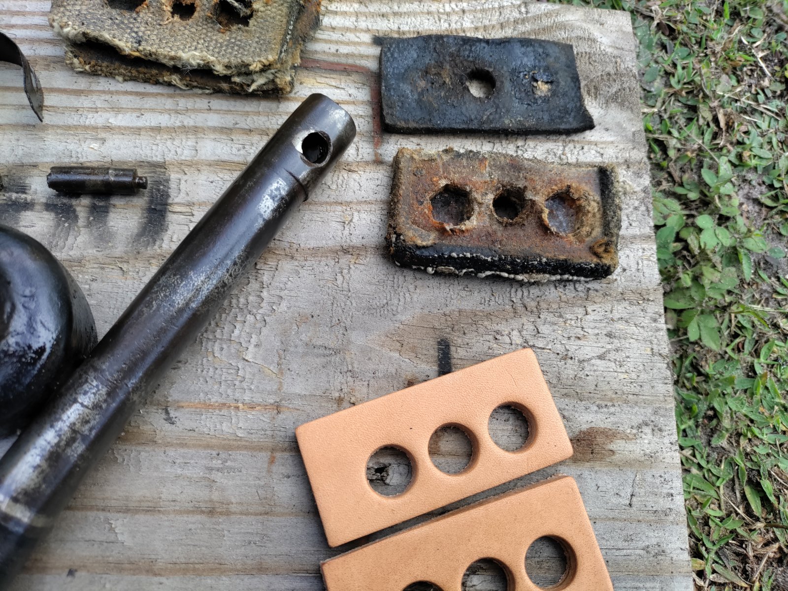 So today I finally decided to pull the radiator off and start getting to work on some front end stuff I needed to do one of which being the crankshaft pulley, the PIN is a little messed up the hole on the crankshaft is wallowed out and the hole on the pulley is wallowed out, the crank handle also has a lot of wear on it. Is there anything that I could do to address all this slack and the crank handle without having to order anything? Also was there supposed to be 2 pads per side of the radiator? I have 2 new but pulled off 4 old. I don't have any fabrication tools so I can't really weld and grind things round. With my bad welding I'd make it worse, and it won't be round. Is there any way I can shim everything? The pin the holes etc? Also quick question on the washers there was a big one then the smaller one than the pulley is that correct?
