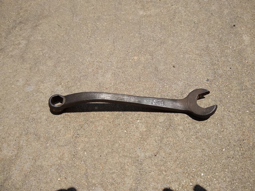 I would imagine/hope that every T driver has this wrench in their tool kit in the car. I knew that it was for the spark plugs and nuts for my demountable wheels, but since I've been restoring my 15 runabout I've come to realize how useful it is for other areas of the car. I even used it today to remove the gascolator from the bottom of my gas tank after removing it from the frame. What a useful wrench. Looks good too! Thankfully I've got an extra one that I keep in my toolbox for ready access.