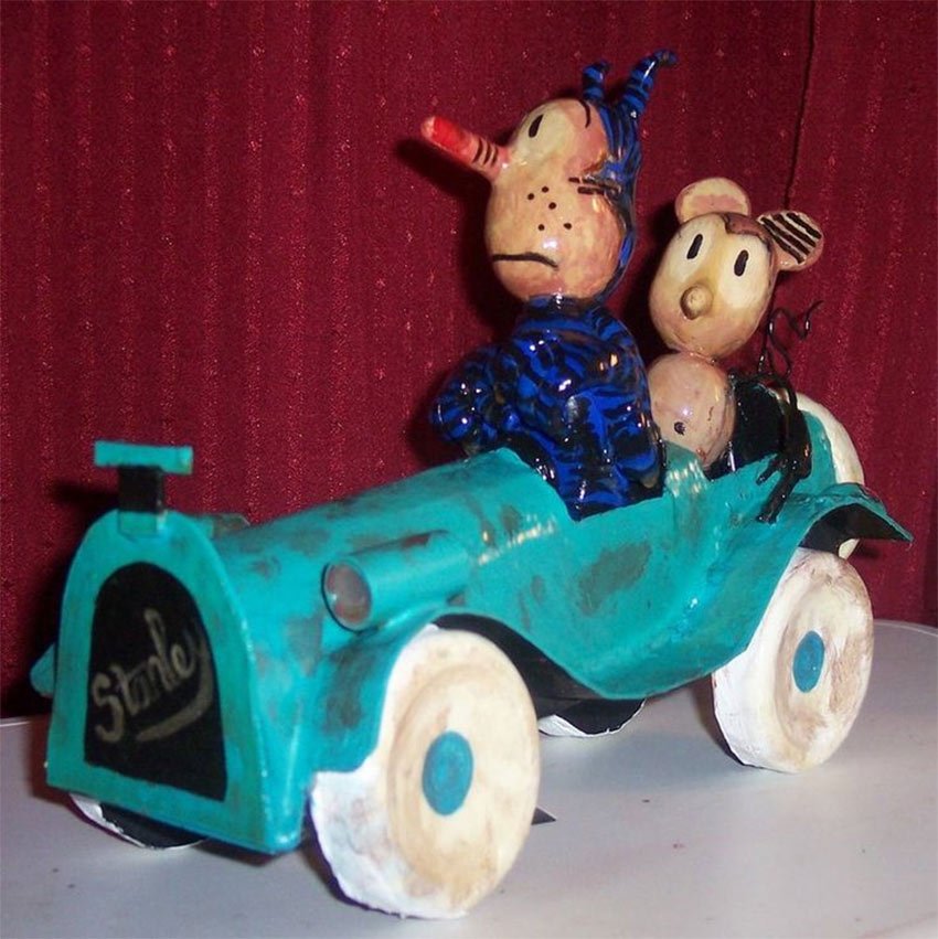Rich E, The cat and mouse in that car are Krazy K and Ignatz the mouse. They had a bizarre romance of sorts, and were a comic strip for a few decades as well as animated cartoons made in the '30s and then again for a short while in the '50s or '60s.