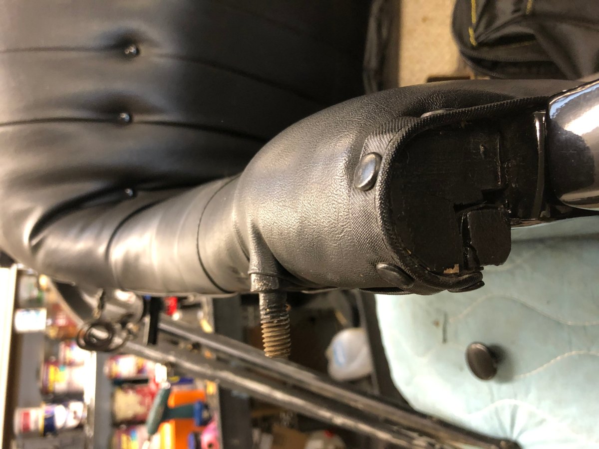 Scott - not sure what you mean by sockets reversed. The two are attached together and while I understand someone could have changed them, the two rear bows "nest" correctly when stacked. From new pictures that just came in I see that the bracket should be straight and not bent like mine but I think even with straightening and letting in the bracket a 1/4" or so into the wood, I'm not going to get that 1" protrusion I'm looking for since the point I'm starting with the threaded portion is right at the tack rail. From there I need to gain a whole inch. Your pictures are great. That tack strip is killing me. That's why John Saylor's thought that there may be a different bracket for the wider armrest makes sense but neither of us have any info.
