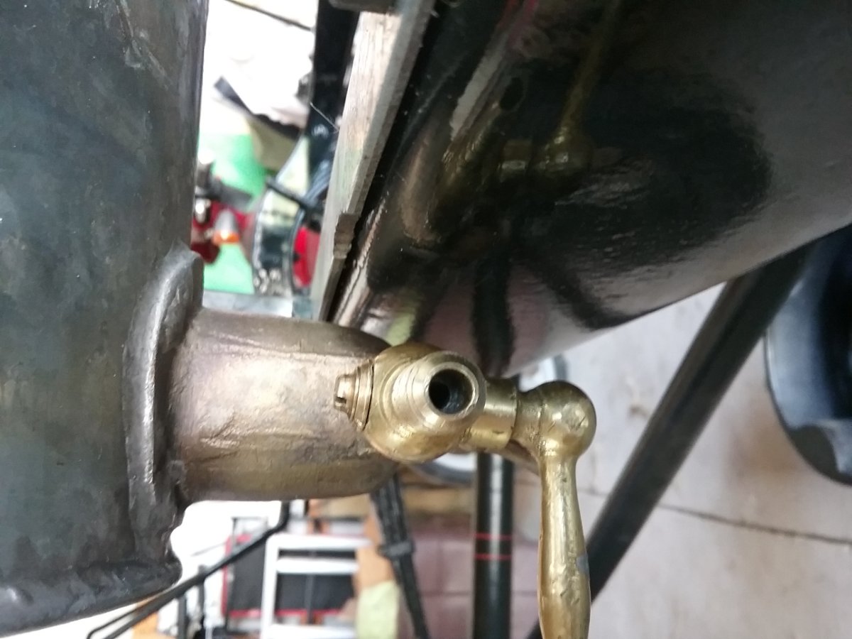 Bill, the outlet fitting on your sediment bulb has a tap with which I am unfamiliar. It looks to have a parallel thread on the fuel line side as is usual, but it appears to have the angled face on the end to accommodate a flared fuel line, which I believe is not usual.The round handle on the tap is also not that with which I am familiar, but that could well be a reflection of my very limited knowledge of the early T's.