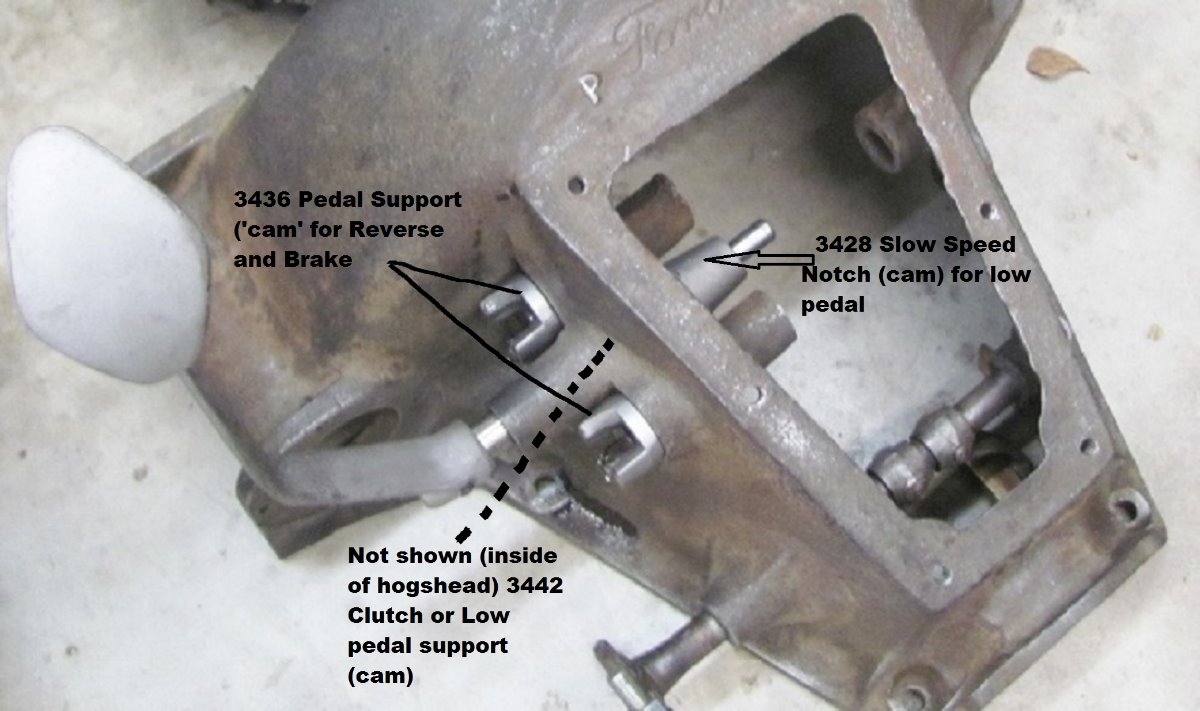 The low pedal or clutch pedal has its 'notch' which is also a cam riveted to the shaft, that 3428 notch is riveted after you remove the old worn one, or when placing a new low/clutch pedal shaft.