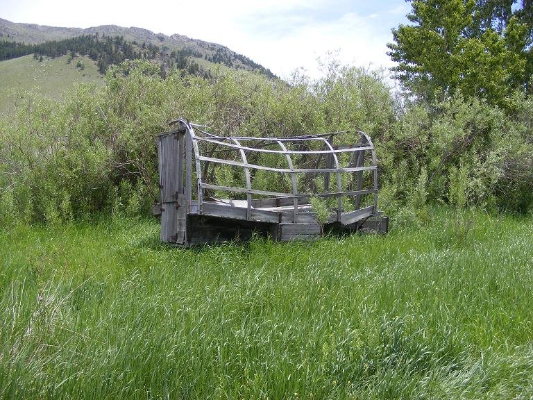 For you city folks and easterners, that is an old Sheep Wagon. The herders would live in it and move from place to place as the sheep grazed. I've had this one for years, parked it down by the creek for no reason other than it looked good sitting there. It is larger than most and probably was a "summer wagon" for herders that had a wife and kids. It is about 3 feet longer than the standard ones. Room for another small bed or two for the kids and a little more living room.