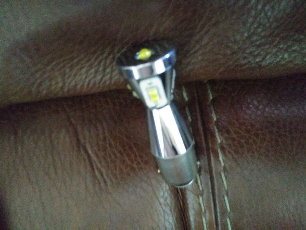 A pix of the previous LED I was using that gave the most down the road light of any I tested, about 5,000 LUX at 3 feet. They were rated at about 1800 Lumens but widely scattered the light using a Model T incandescent reflector. They quit making this LED configuration and it too has a color temperature of 6500 degrees Kelvin. Again a blue hue! Any faster than 20mph on dark country roads and there was not enough down the road light from this bulb. That was also rather like the light from the magneto headlights but at least I could be seen even when the engine was idling. It is a very bright tail light bulb!