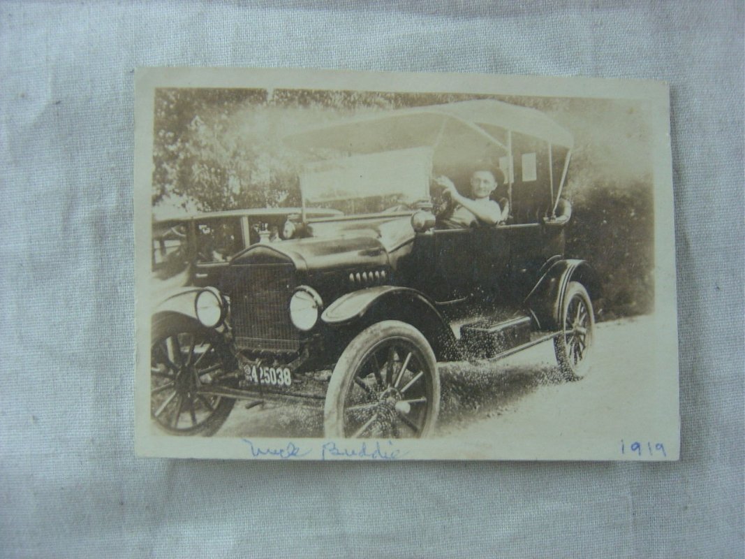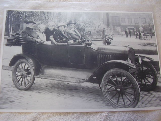 My family's first car was a 1917 Touring, similar to what I own today. This photo shows my grandparents in the back, father in the passenger's seat and uncle behind the wheel. The photo was taken about 25 miles from where I live today.