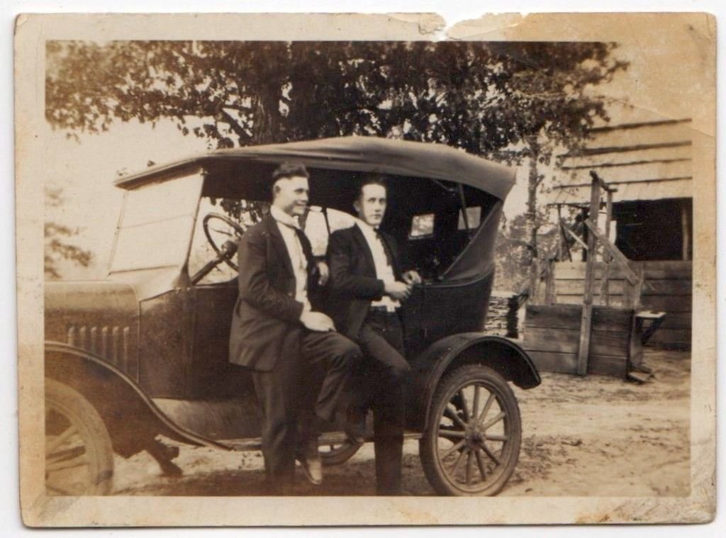 My family's first car was a 1917 Touring, similar to what I own today. This photo shows my grandparents in the back, father in the passenger's seat and uncle behind the wheel. The photo was taken about 25 miles from where I live today.