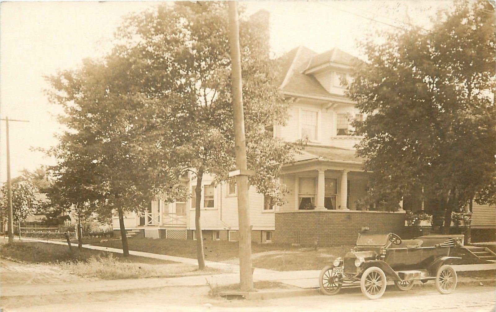 Do you have any other information about this photo? It is very interesting that it is a 1911 touring with aftermarket fore-door with the latch on out outside. With the electric headlights, top boot, and rebound springs, I wonder if this photo is taken a few years later, maybe after being repainted, too. Does anyone recognize the license plate state and year?