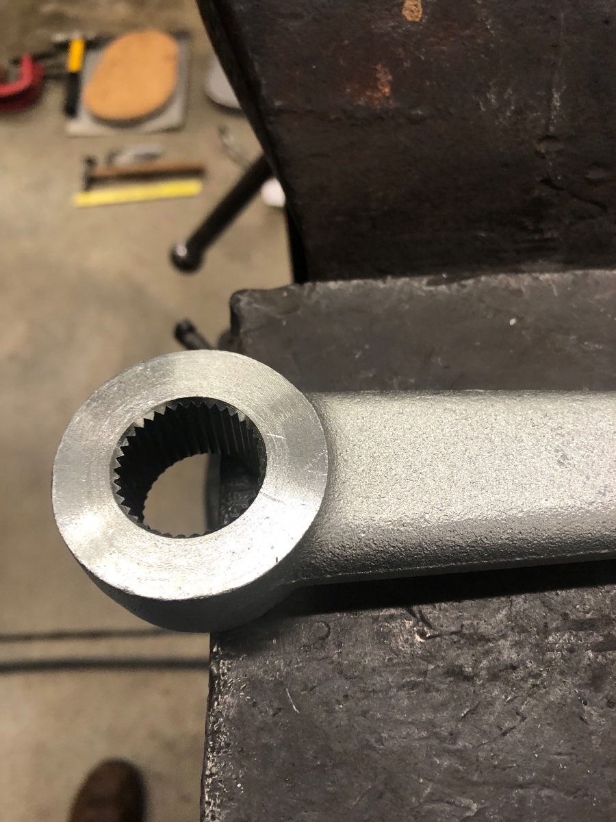 Had a little more time so I started the twist modification and reforge of the steel. The drag link needs to be twisted approximately 84 degrees to the right.