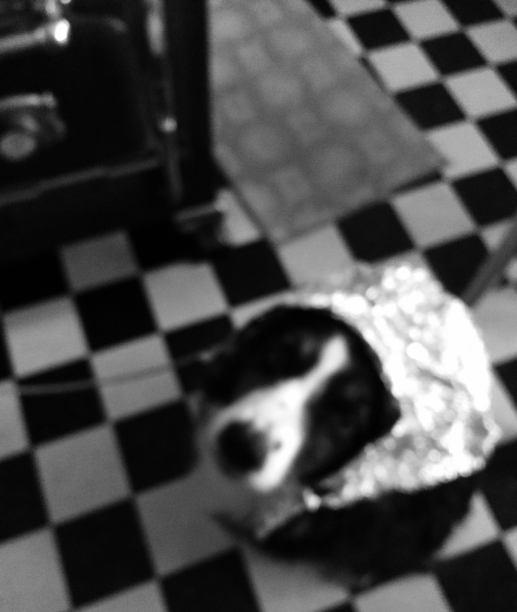 Conspiracy theorists might have a field day with this: there was hardly anyone more invested in the old ways than Cuthbert (Mad Dog) Maddox, yet in 1913 he did buy a Model T Ford. He rarely drove it, preferring to ride his favorite paint mare Demelza. It is interesting to note that in 1914 when all Model Ts left the factory painted black, that Cuthbert began wearing an aluminum colander under his hat, on Kalamity Dick's advice. Photo below of Maddox in his 70's shows he never abandoned the practice. Further, the blurry image cropped from another photo shows the sheep dogs on the Maddox ranch were also fitted with aluminum foil bonnets. Cuthbert would admonish his help, often saying, "Dammit Leland, don't you dare let them dogs into the pasture without their owl-ewe-minimum on !!"