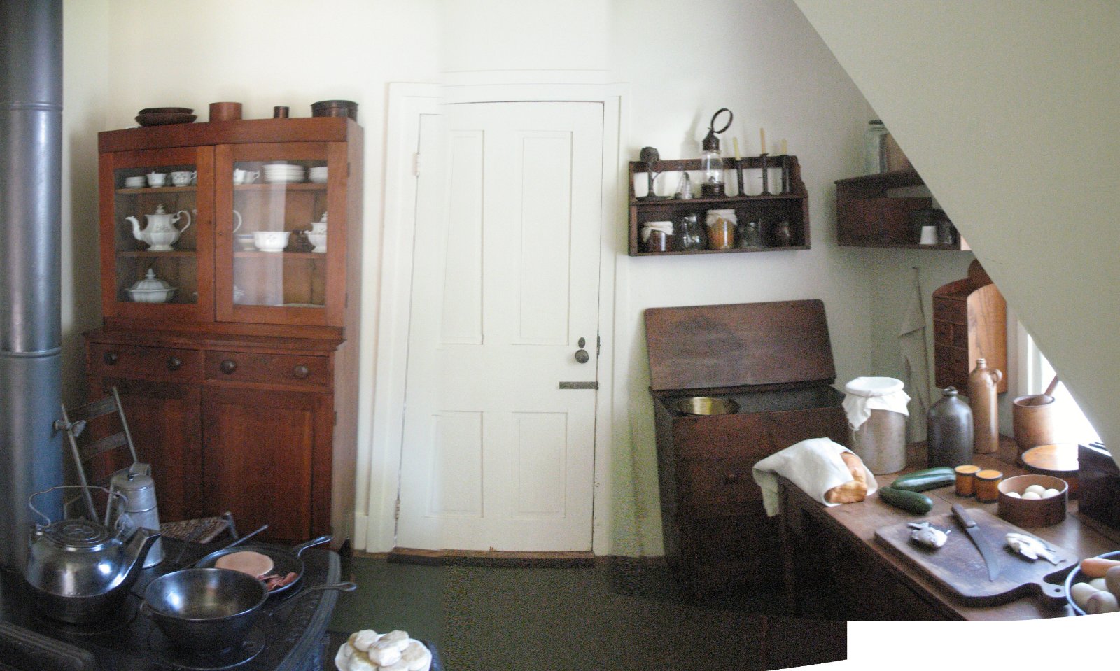 Sometimes it's impossible to get far enough away from the subject to "get it all in". You can take two or more overlapping shots and use Photostitch or a similar program to combine them into one. The first view of New Salem, the interior of Dr. Allen's house, and the big wheel at the carding mill are all Photostitched.