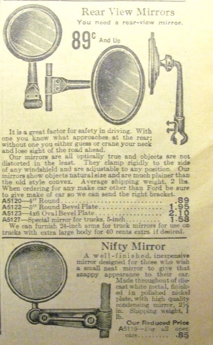 (That's the type that mounted top center of windshield.) By around 1926 Ford sold the top of windshield or header mounted rear view mirror for open and closed cars.