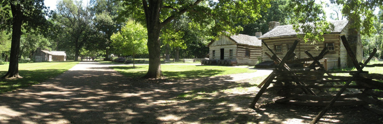 Sometimes it's impossible to get far enough away from the subject to "get it all in". You can take two or more overlapping shots and use Photostitch or a similar program to combine them into one. The first view of New Salem, the interior of Dr. Allen's house, and the big wheel at the carding mill are all Photostitched.