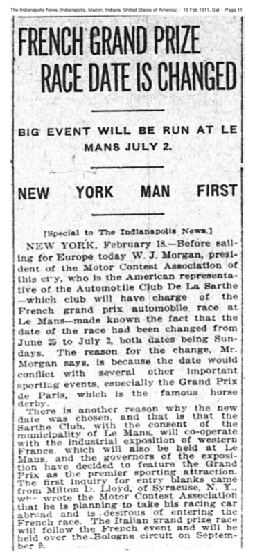 In early 1911 U.S. newspapers report the date for the French Grand Prix:
