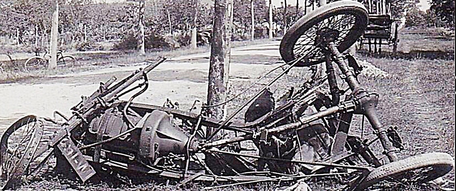 Unfortunately, six days before the Grand Prix while training on the course, Henri Depasse and his mechanician lost a tire, careening into a tree. The mechanician was killed instantly and the car a total wreck: