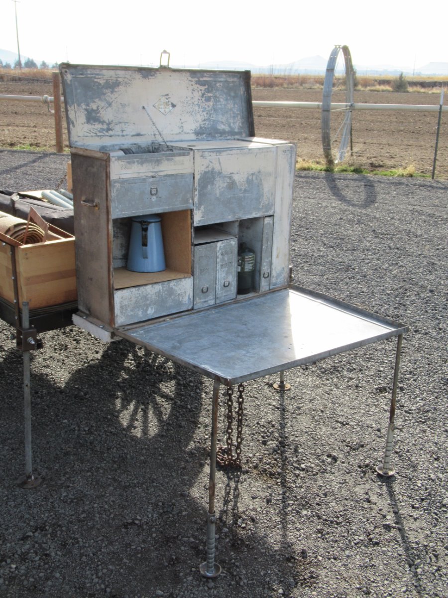 I finally finished (except some painting when it warms up) my model T trailer, I got a free cheap trailer given to me and modified the frame, put a T front axle on springs from an old buggy and was able to use parts and pieces that I had. I bought the kitchen from a fellow that was going to mount it on the wall of his shop because he thought it was interesting. I made it with a retractable tongue so it is out of the way. (got a new knee 2years ago after falling over a trailer tongue). I towed to coffee this morning and it tows really nice.