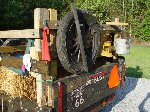The original Beverly Hillbilly's vehicle was an Oldsmobile, someone on the Forum told me it was a '23. There is no way I would modify a really nice and rare car like that. So I used a TT frame and many parts I had collected. Basically it was a matter of getting the chassis together and running, then road safe with lights etc, then build the bed etc, then the little touches like the road kill bucket. All fun, and I feel that she is mechanically sound. I also enjoyed designing as I went along to make everything from the driver's seat comfortable to doing the wood butchery. The only thing I regret is I cut the bed a little short. It fits into the garage easier, but it limits space in the rear. But there is enough space to seat one man and seven of his small children, nieces, and nephews for a ride at C&C. The rear seat is two bales of straw end-to-end with HD outdoor cushions that were on seal. I can go on and on about all the stuff involved, but the key is I have enjoyed it, and I have not hesitated to take suggestions from others.