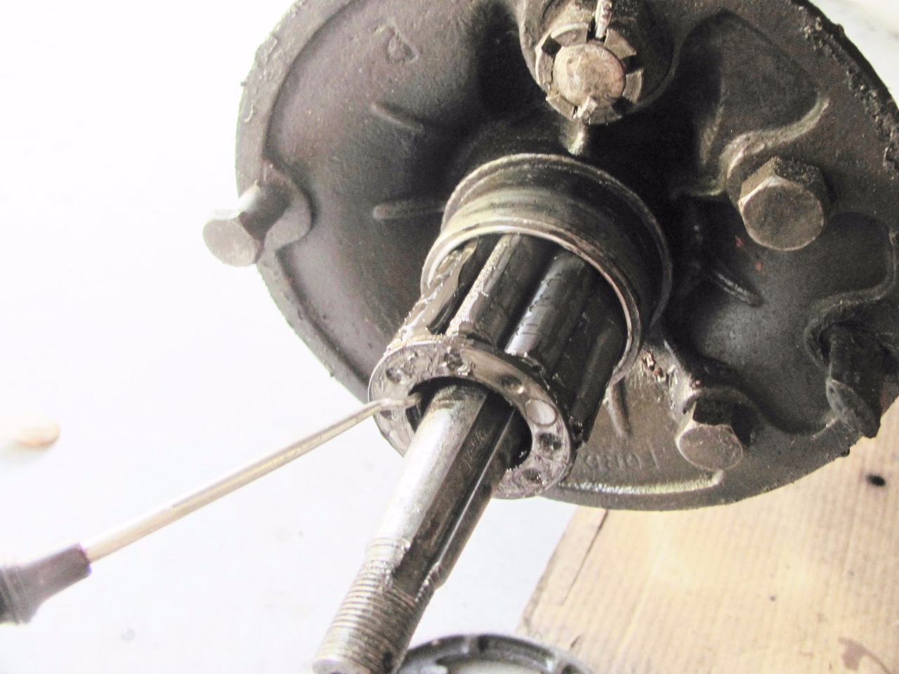 while we're waiting for Steve's photo, I think you'll have luck if you will hook the bearing with a wire and rotate the other wheel, forcing this one to turn, too. I have never failed to have a tight bearing walk out while pulling on it and someone else rotates the axle for you.