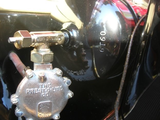 I have recently come across an acetylene cylinder without an markings. I have seen some previously with the "Prest-o-lite" script rolled in the shell but this one has nothing. The valve at the top is offset and it has the gauge concealed within the base as would a running board tank. It is 6 & 1/4" in diameter and 20" tall/long which I think is about right ? but it weighs about 28 lbs. Is it a correct tank for T or something else ?