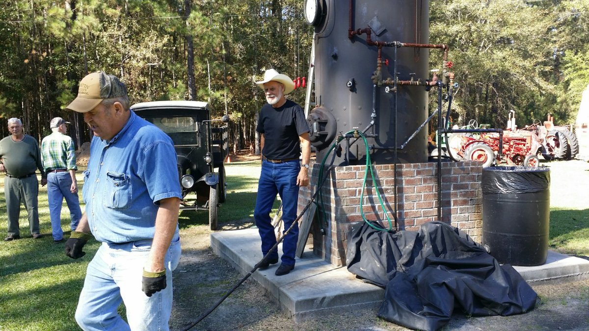 Yes, we play with steam too. I have a friend who has a good bit of steam stuff. The small 10hp boiler and the orange engine is mine. I have re-tubed the boiler and pressure tested it, but have not put heat to it yet. My wife and both sons have attended a steam school and were signed off to operate live steam machinery. I've yet to operate a locomotive, but have driven a traction engine. We mostly do stationary steam, though.