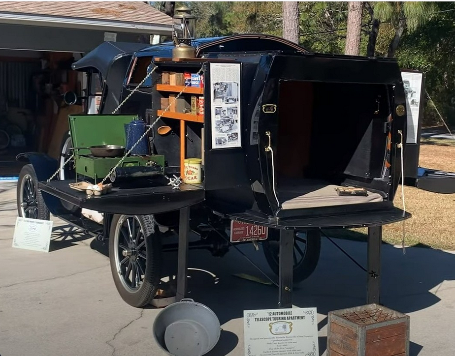 Well I can't compete with an auto bed, but I also have a 1915 roadster, with limited storage. I found this camp stool at American Science & Surplus. It is advertised as good for 350 lbs.